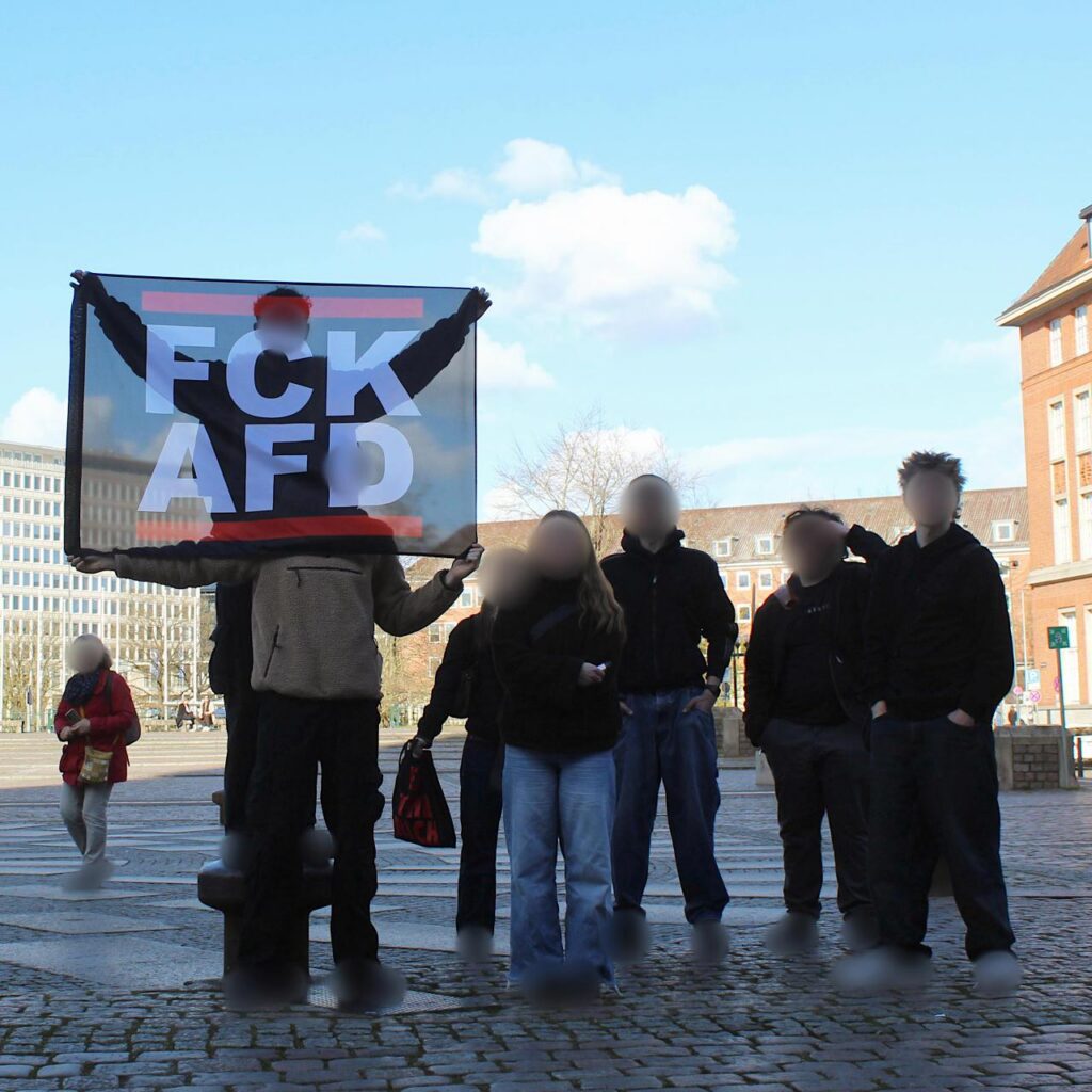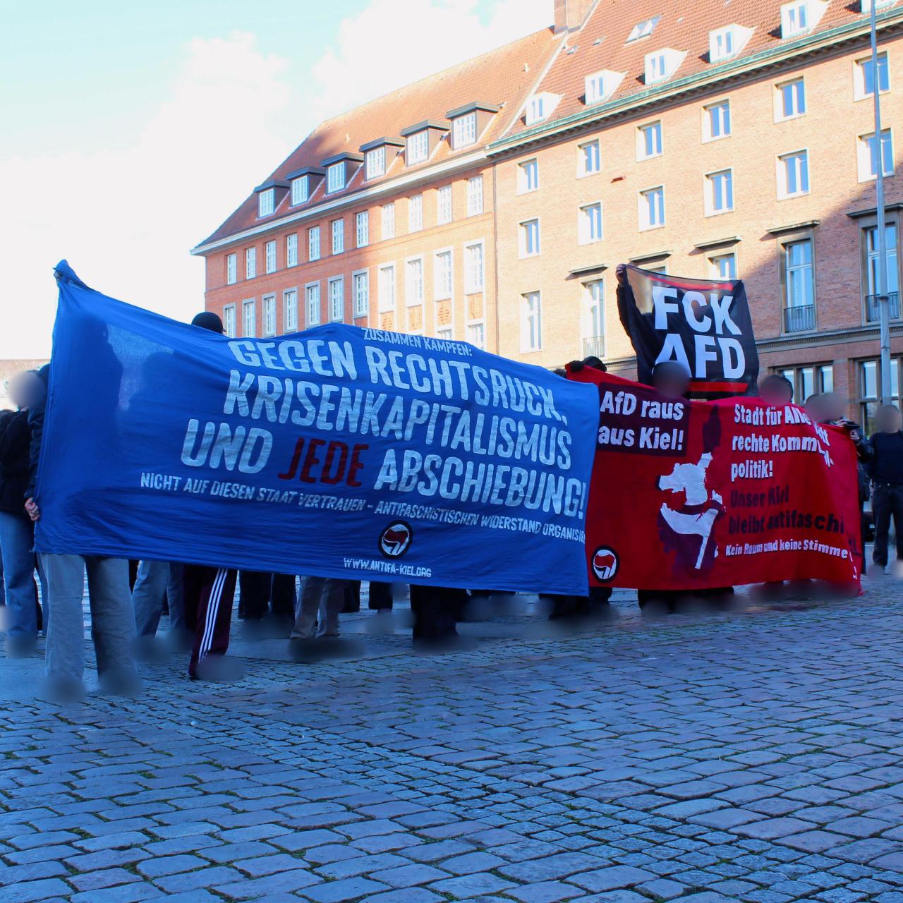 Vergangenen Freitag lud die AfD mal wieder zu einer Veranstaltung im Rathaus. Thema war die EU-Politik. Mit der Aufgabe ihres Kieler Büros scheinen sie ihre Veranstaltungen nun hier zu intensivieren. Der Zentrale Protest fand an der Waisenhofstraße statt.