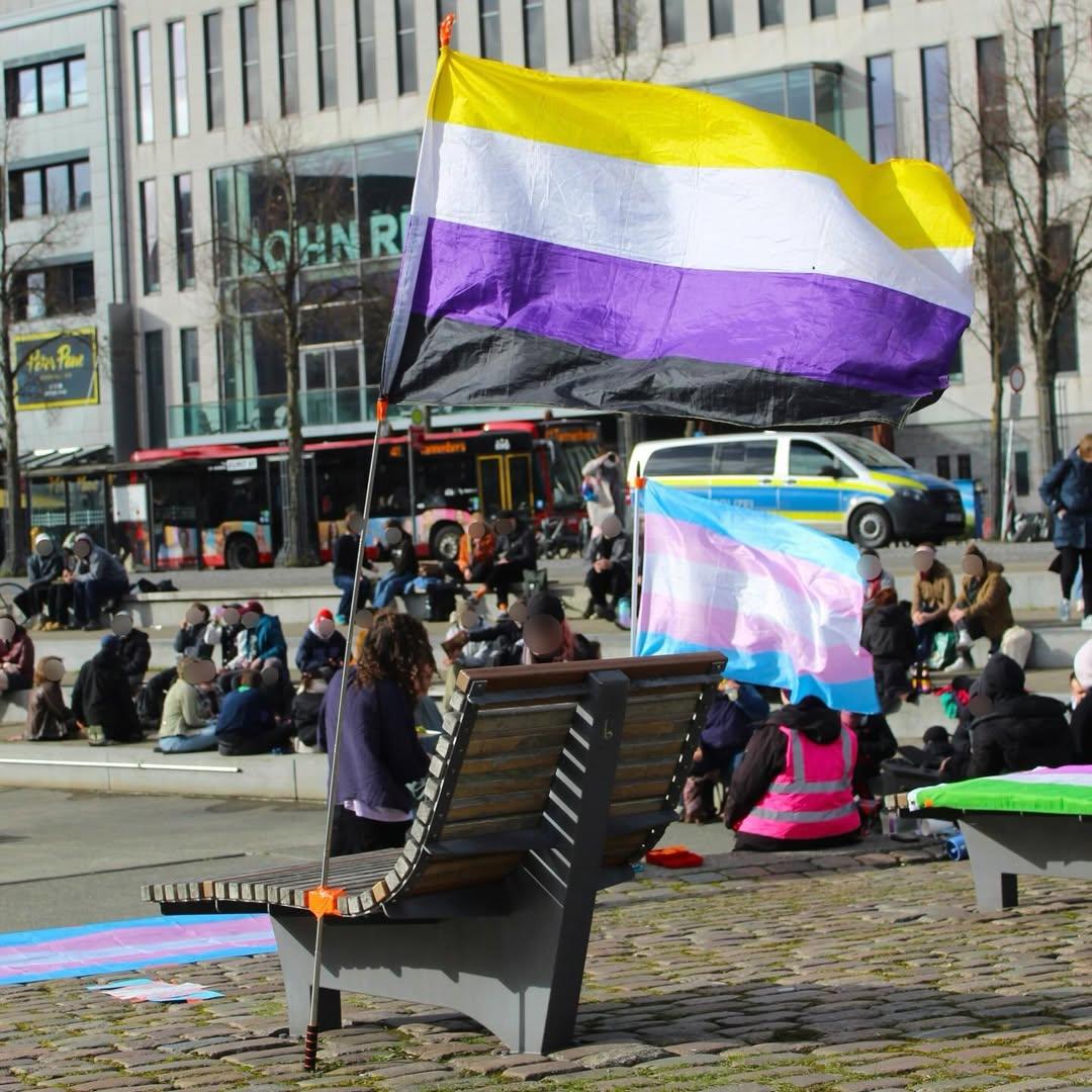Nach etwa zweieinhalb Stunden endete mit Sinken der Sonne und Temperatur zwar die Veranstaltung, doch nicht unsere Sichtbarkeit! Egal ob laut oder leise, kämpferisch oder entspannt, wütend, traurig, fröhlich, jung oder alt—wir stehen zusammen und sagen mit Recht: Trans* sein ist wunderschön!⚧️🏳️⚧️🫂🩵🩷🤍🩷🩵