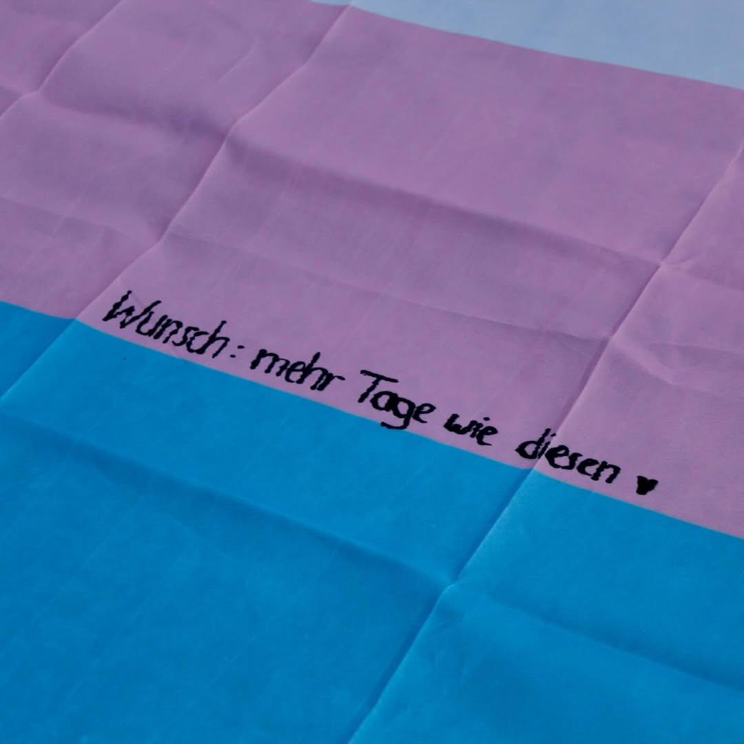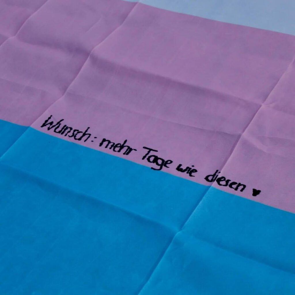 Außerdem nutzten die Besucher*innen der Veranstaltung die Möglichkeit, eine große trans* Flagge mit Kommentaren und Zitaten zu bemalen, um stärkende und positive Botschaften von und für die trans* Community zu hinterlassen.